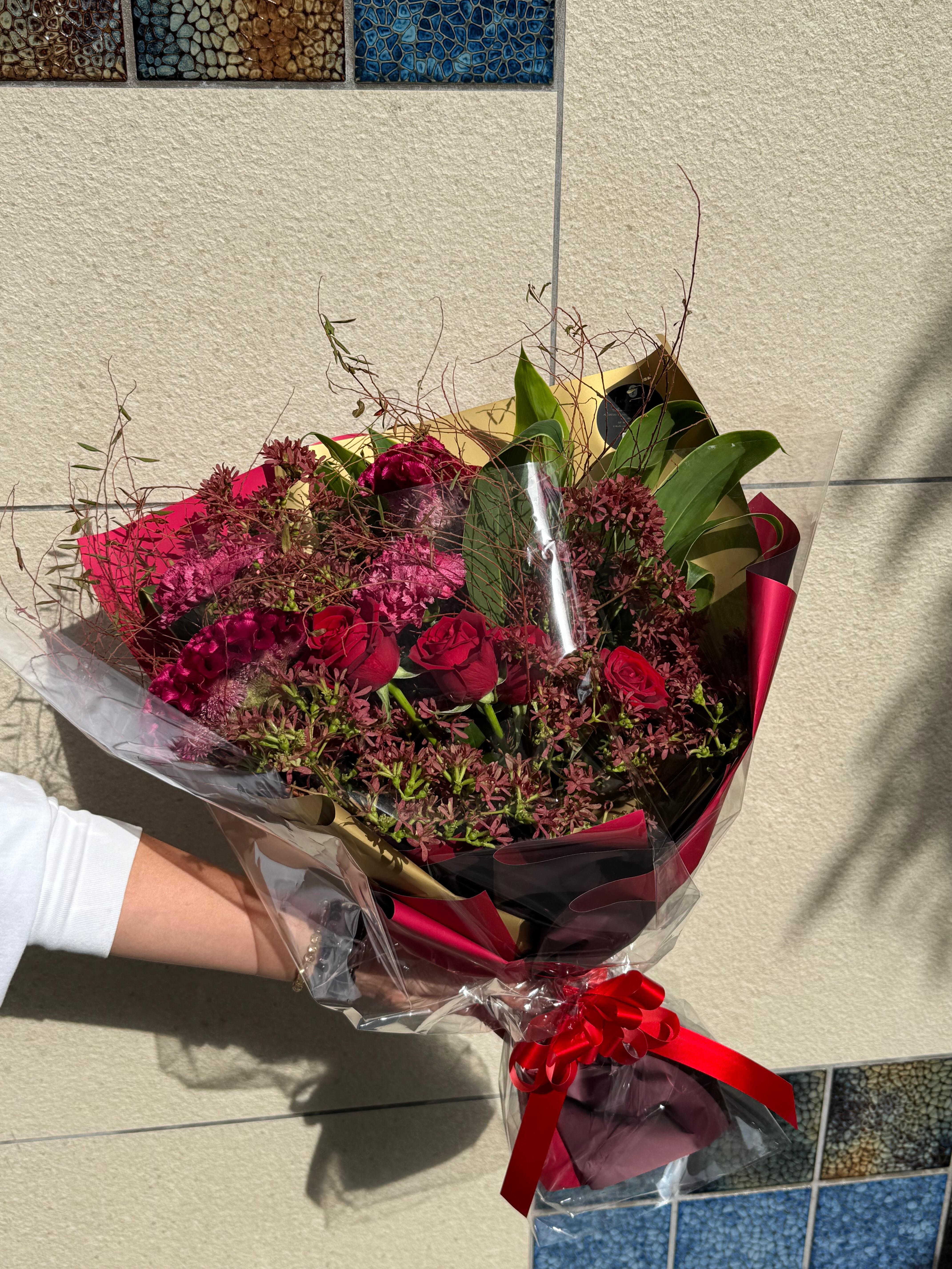 人目を引く存在感で、華やかな雰囲気を演出するため、特別な日を彩る花束となっております。