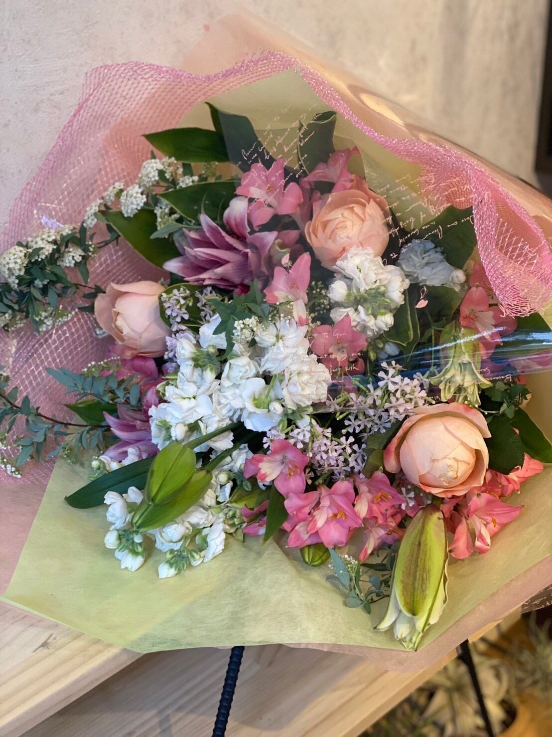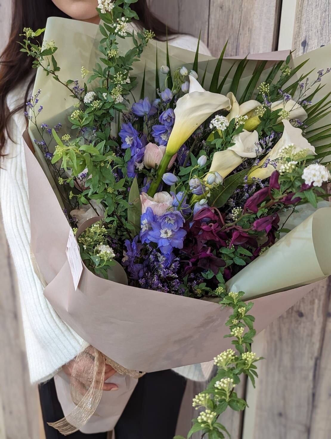 お花や、グリーンを贅沢に使用し、高級感のあるLサイズの花束。